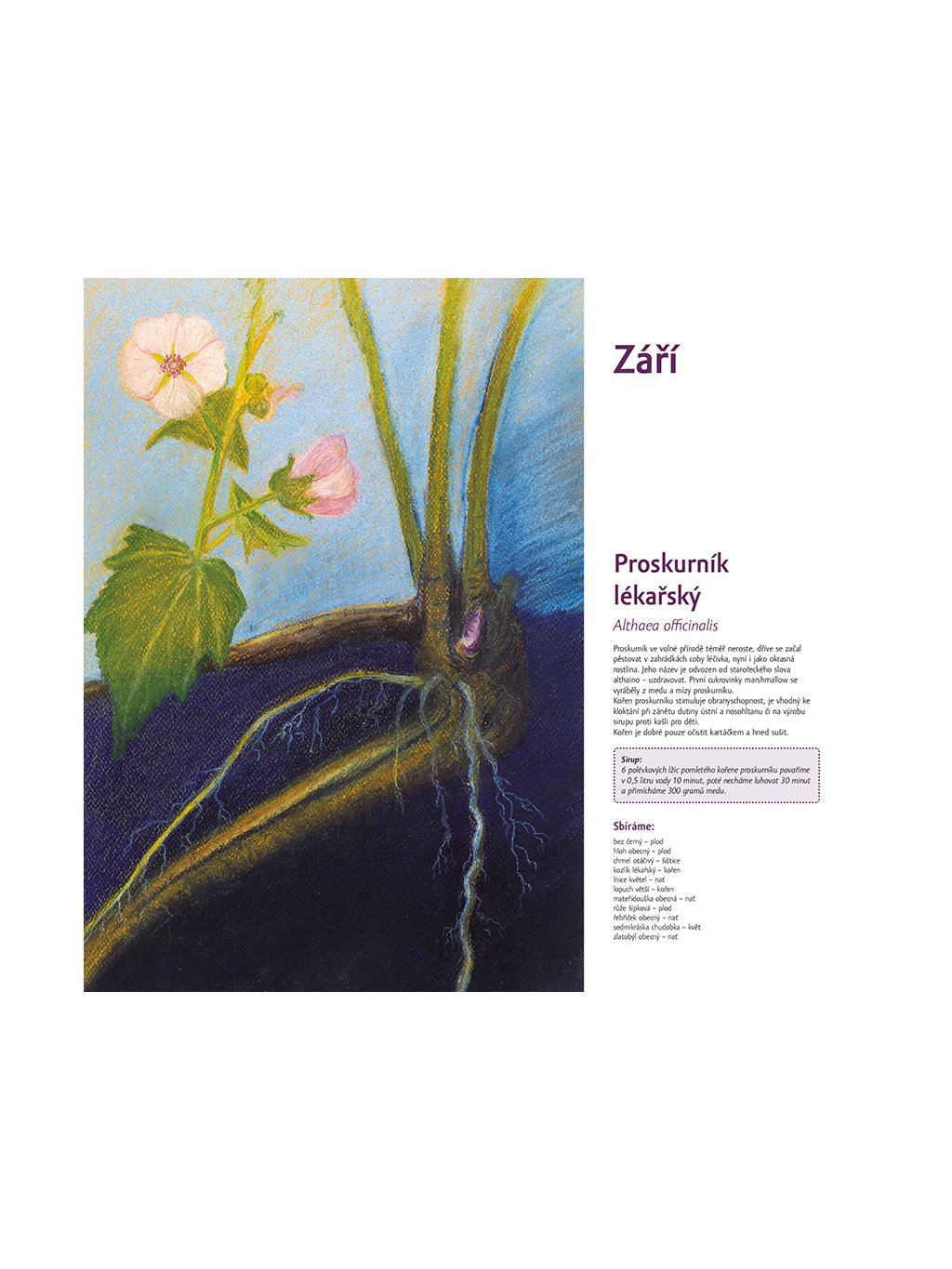Originální kresby bylin doplňuje krátká informace o rostlině a léčivý recept,